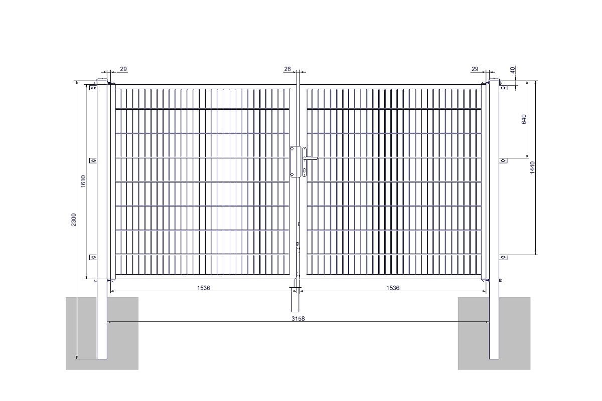 Unser 2-flügeliges Doppelstabmattentor "Medium" bietet eine robuste und hochwertige Lösung für Ihren Garten- oder Eingangsbereich. Das 2-flügelige Tor verfügt über einen umliegenden Rohrrahmen mit einer Größe von 40x40mm, der dem Tor zusätzliche Stabilität verleiht. Sie haben die Wahl zwischen verschiedenen Varianten für die Torbreite: 3000mm oder 4000mm, sowie für die Torhöhe: 800mm, 1000mm, 1200mm, 1400mm, 1600mm, 1800mm oder 2000mm. Die Flügelstreben des Tores bestehen aus einer eingeschweißten Doppelstabmatte mit den Maßen 8/6/8mm und einer Maschenweite von 50x200mm. Die Torpfosten haben eine solide Konstruktion mit den Maßen 80x80mm und der Torrahmen besteht aus 40x40mm.