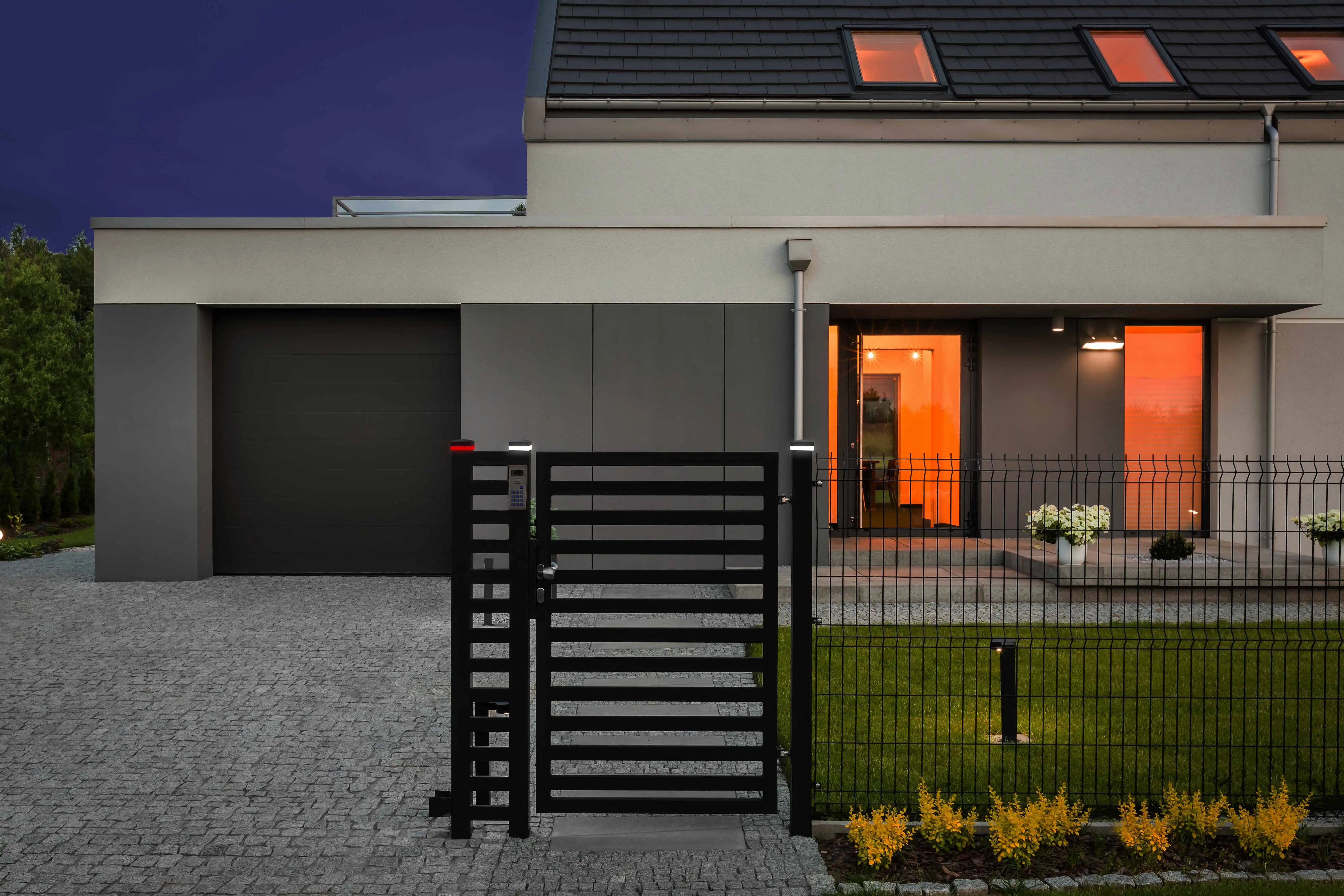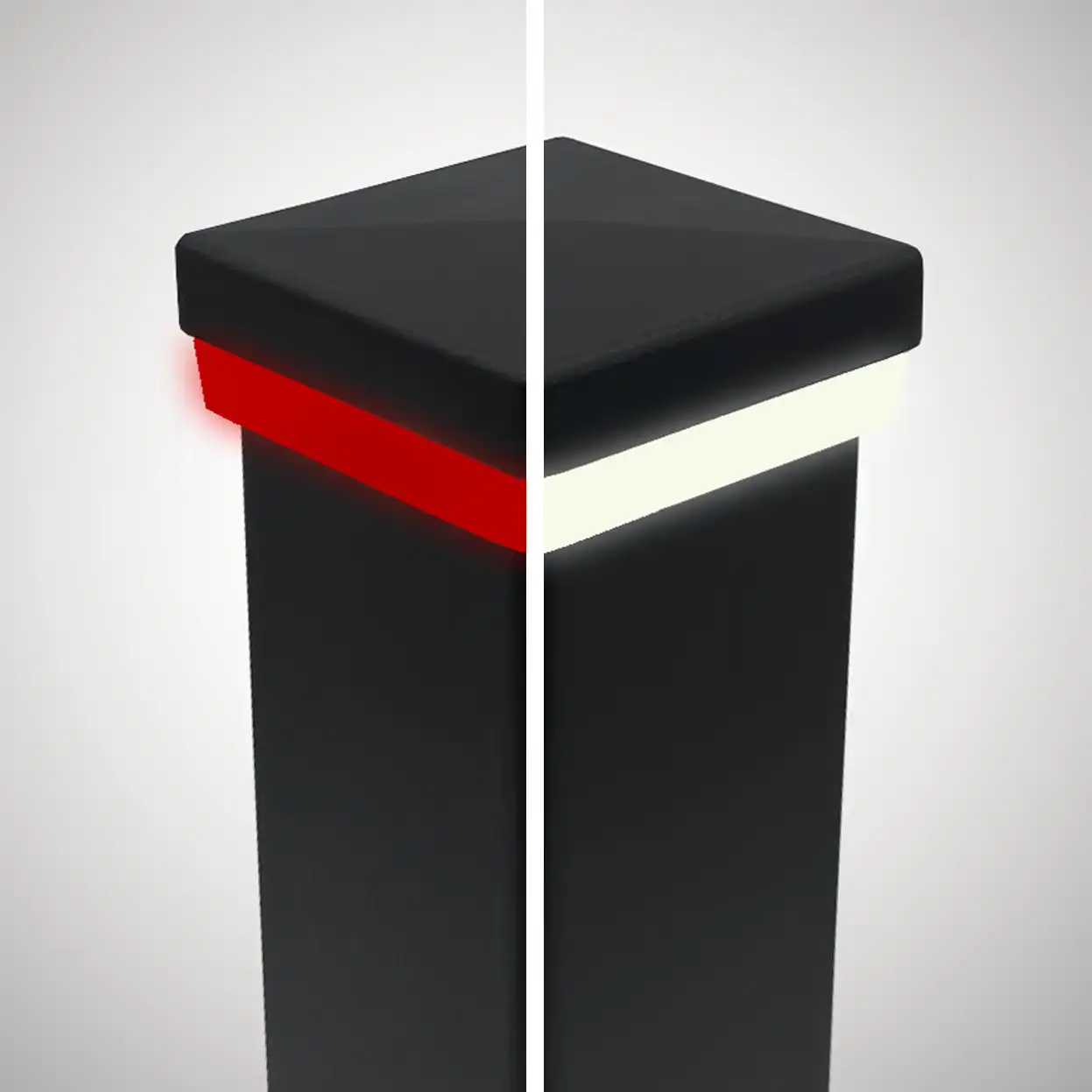 Die erste Blinkleuchte für elektrische Toranlagen, die nicht nur bei einem bewegenden Tor durch ein Blinken warnt, sondern ansonsten mit einem neutralweißen Dauerlicht mit der übrigen Zaunbeleuchtung um die Wette strahlt.
