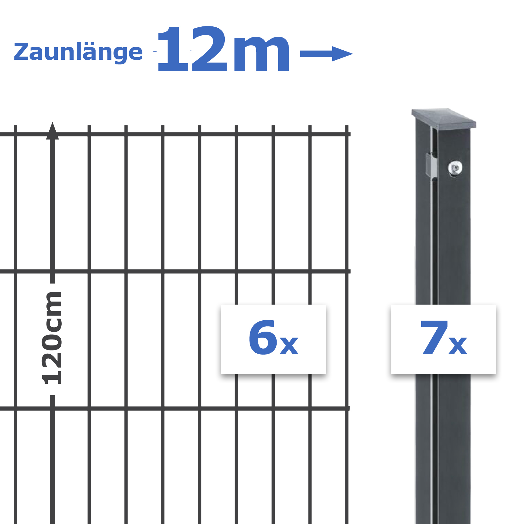 12m Set Doppelstabmattenzaun PLUTO 120cm hoch – inkl. Pfosten