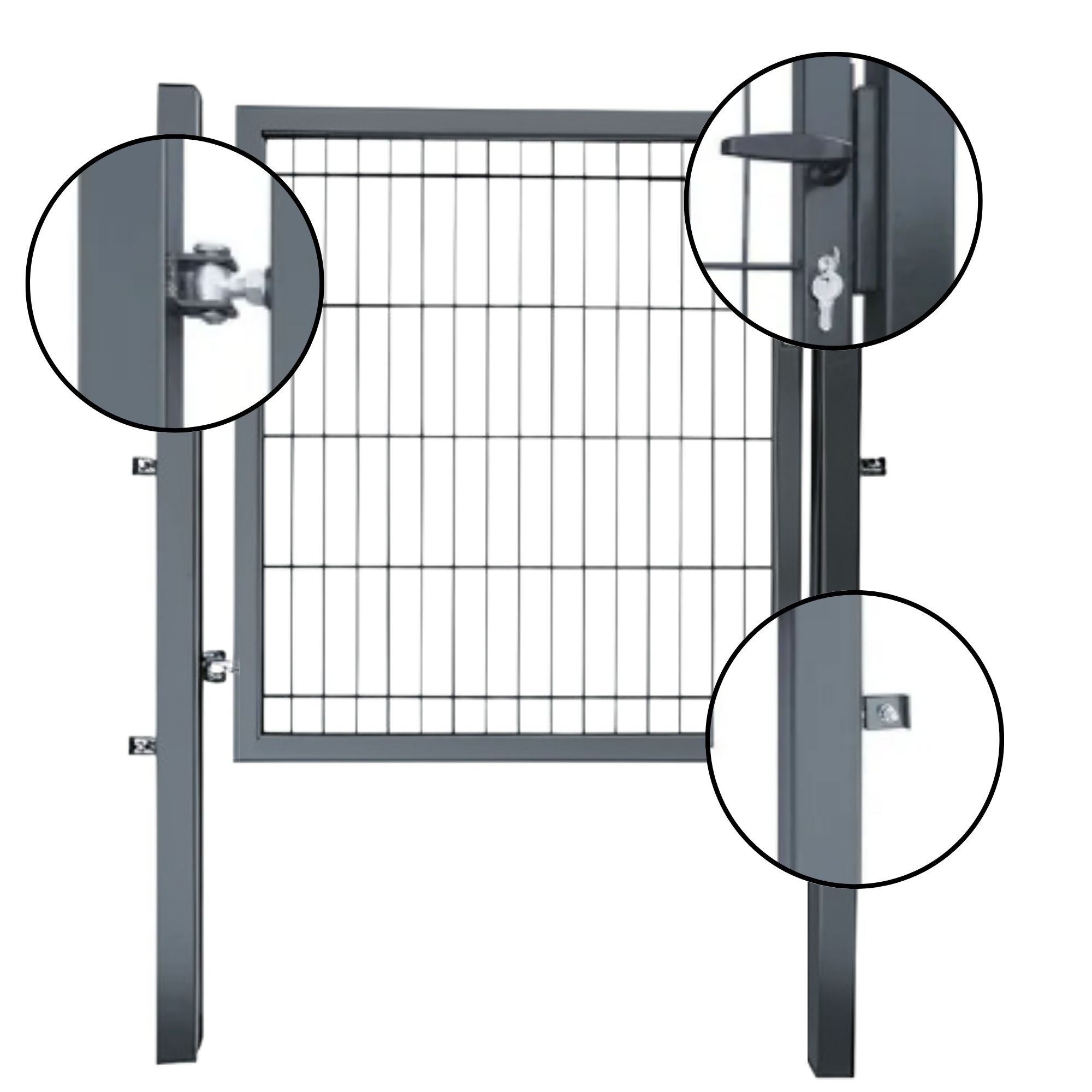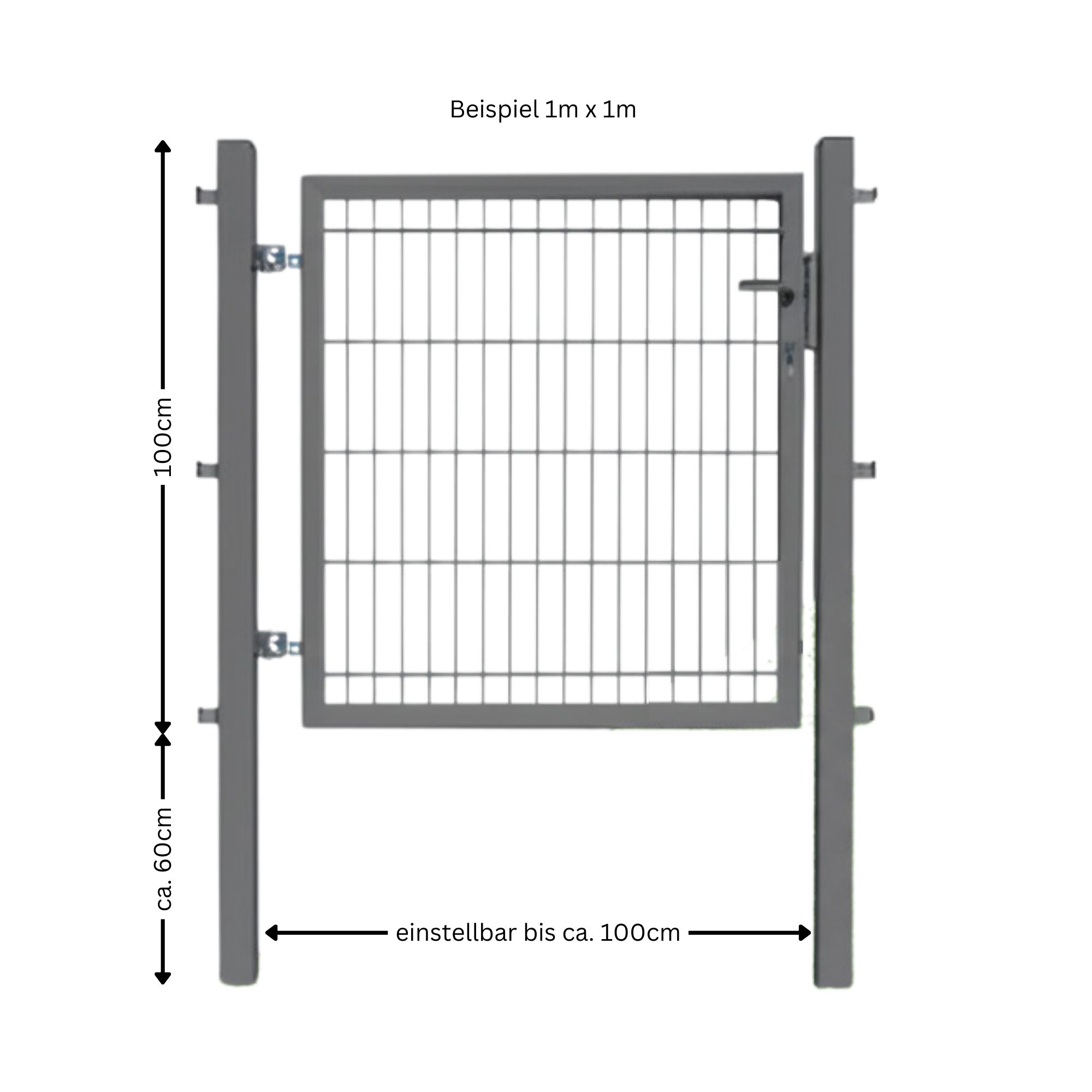 1m x 1m Set mit Befestigung Zaun-Anschluss Anthrazit Doppelstabmatten Gartentor 1-flüglig 6/5/6 RAL 7016