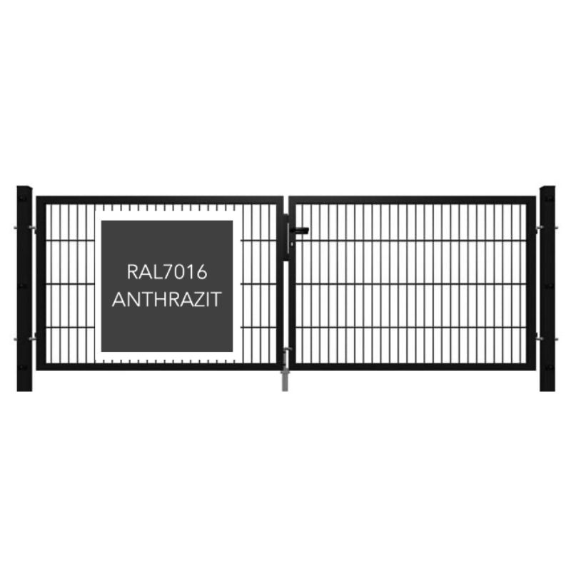 Setzen Sie auf Qualität und Sicherheit mit unserem 2-flügeligen Doppelstabmattentor – die ideale Ergänzung für Ihren Zaun!