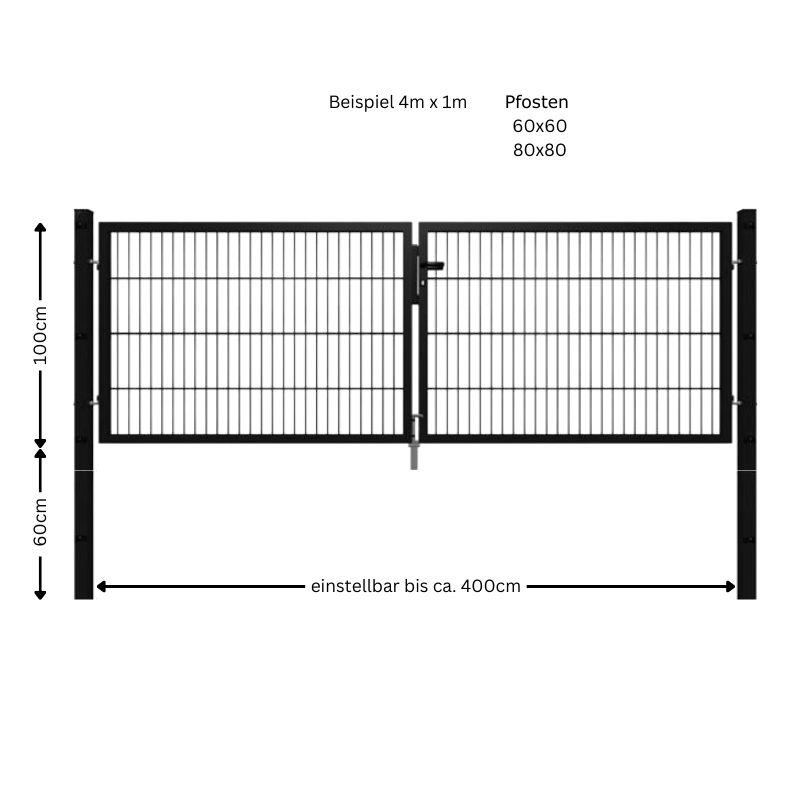 4m x 1m Tor-Set 60er Pfosten Anthrazit Doppelstabmatten Gartentor 2-flüglig 6/5/6 RAL 7016