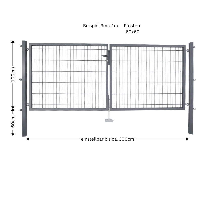 3m x 1m Set mit Befestigung Zaun-Anschluss Anthrazit Doppelstabmatten Gartentor 2-flüglig 6/5/6 RAL 7016