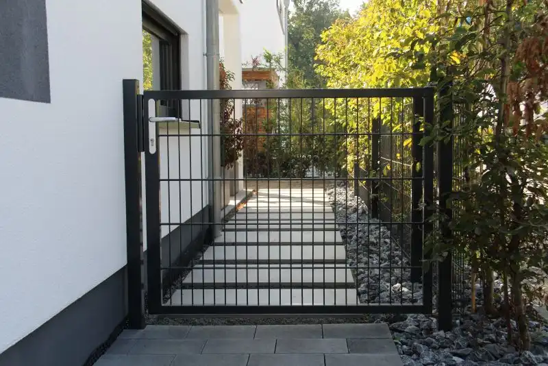 Das Doppelstabmattentor "Medium" zeichnet sich durch seine Vielseitigkeit, Praktikabilität und Langlebigkeit aus und ist universell einsetzbar. Es bietet nicht nur eine sichere Zugangsmöglichkeit, sondern eignet sich auch hervorragend in Kombination mit Sichtschutzstreifen, um einen effektiven Sichtschutz zu gewährleisten. Wählen Sie unser Doppelstabmattentor "Medium" für eine preiswerte und dennoch robuste Lösung, die Ihren Zaun perfekt ergänzt. Es fügt sich harmonisch in Ihre Zaunanlage