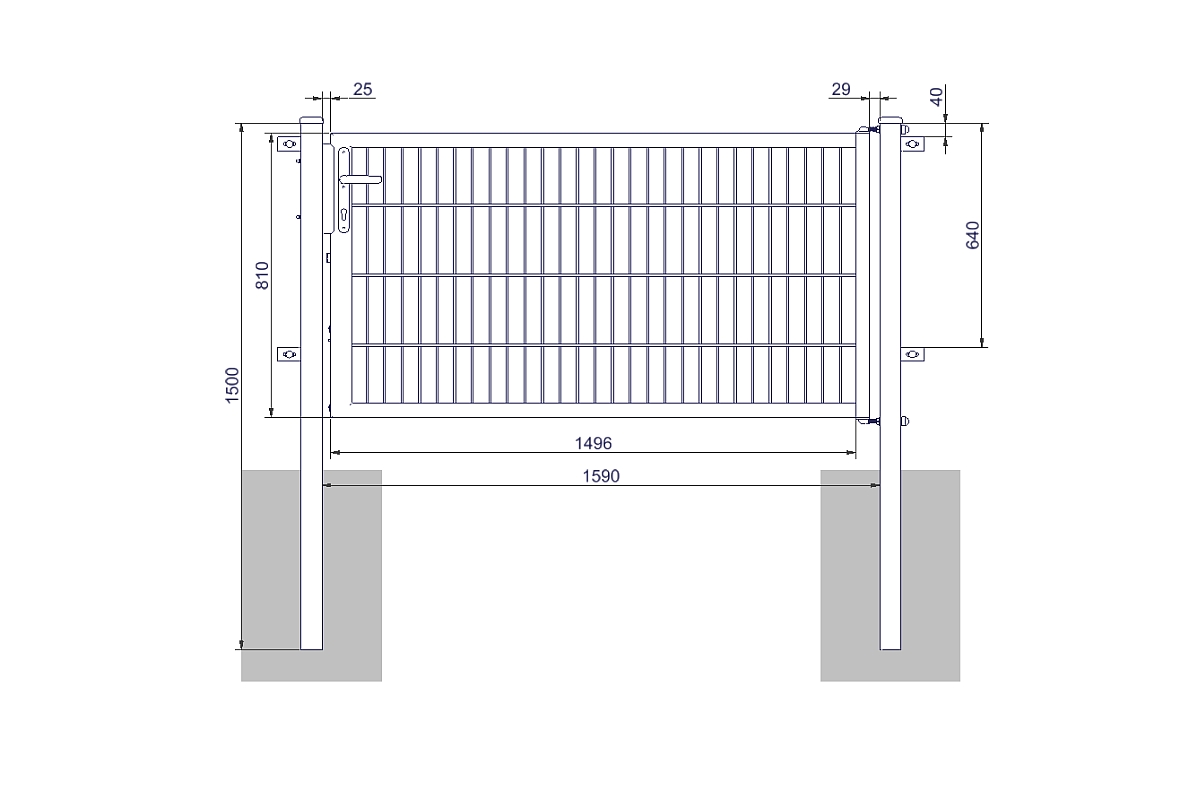 - Torfüllung: Doppelstabmatte 8/6/8mm, Maschenweite 50x200mm
