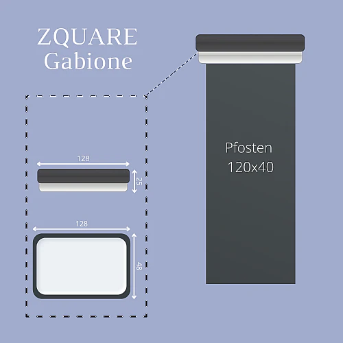 | Geeignet für Zaunpfosten ...: | 120 x 40 mm Gabione |